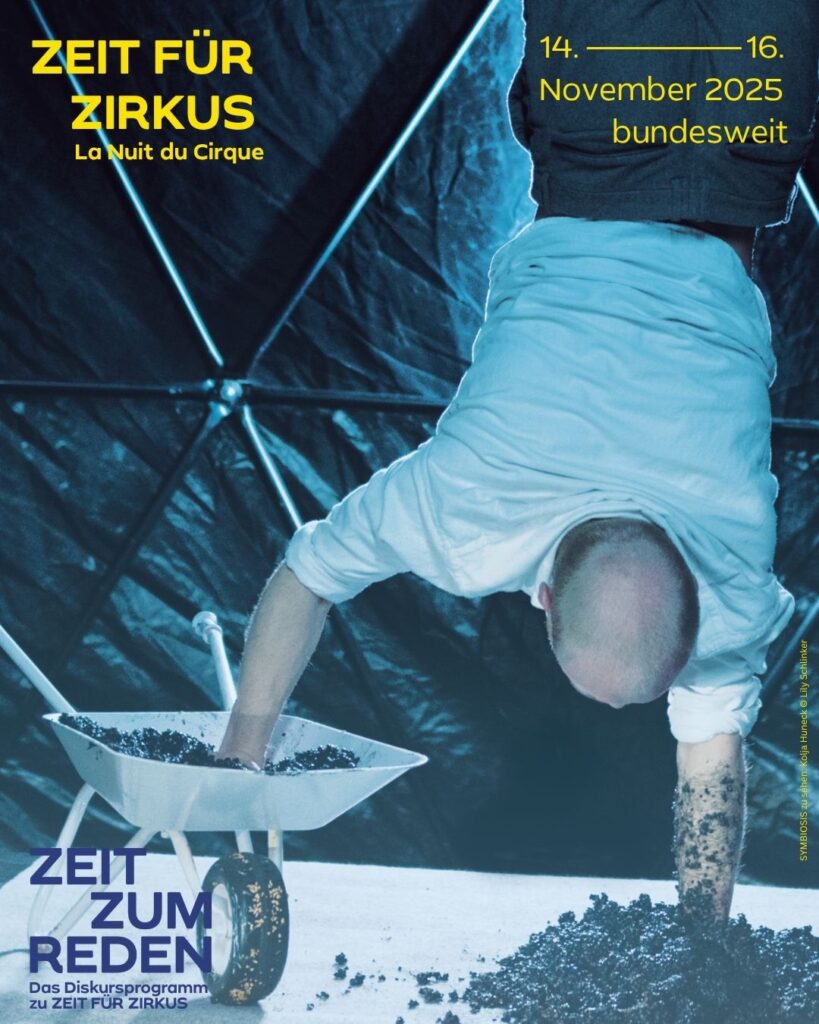 ZEIT ZUM REDEN wird gefördert durch den Fonds Darstellende Künste aus Mitteln des Beauftragten der Bundesregierung für Kultur und Medien und findet in Kooperation mit sieben führenden Veranstaltungsorten und Initiativen für Zeitgenössischen Zirkus in Deutschland statt: Chamäleon Theater Berlin, Societaetstheater Dresden, LOFFT – DAS THEATER Leipzig, Prinz Regent Theater Bochum, Atemzug e.V. Köln, Kulturzentrum Tollhaus Karlsruhe und Munich Circus Arts. Gemeinsam mit den überregionalen Veranstaltungsorten finden im November Begegnungen zwischen Performenden und Publikum statt, die den Austausch mit der Kunstform und ihrer Akteur:innen im Kontext der drängenden Themen unserer Zeit verhandeln.
