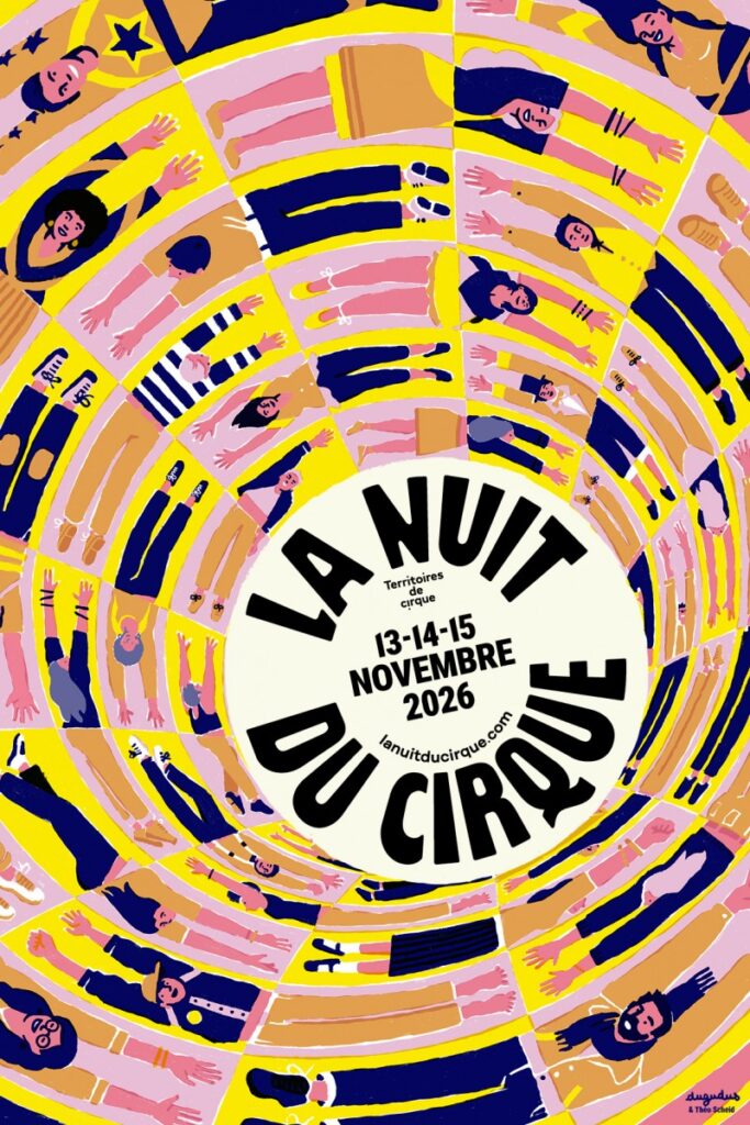 The call for participation for La Nuit du Cirque 2026 is now open — and with it, a new visual era begins. Following Pierre Tandille and Magali Brueder from Aéro Club, we are launching a new collaboration with illustrator Dugudus and graphic designer Théo Scheid, who will create the event’s visual identity for the next three editions. A constellation of bodies in motion, a spiral of irresistible attraction: the image already expresses everything that La Nuit du Cirque embodies.