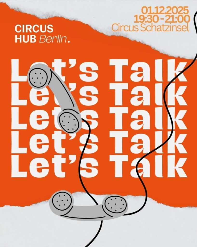 Am 1. Dezember 2026 um 19:30 Uhr im Circus Schatzinsel, May-Ayim-Ufer 4, 10997 Berlin, werden die Künstlervermittler*innen Claudius Bensch (Aurora Nova) und Andrea Wittwer (ZAV-Künstlervermittlung) einen Impuls geben und mit euch über Resilienzstrategien aus der Perspektive der Arbeits- und Künstlerinnenvermittlung für die Berliner Zirkusszene sprechen.